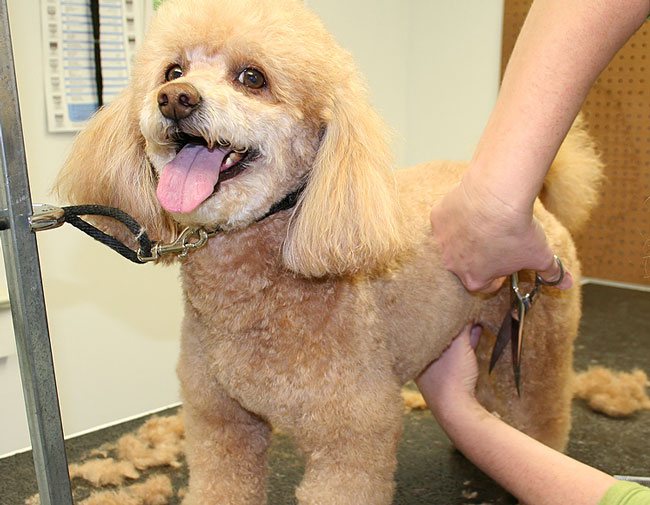 Другой вариант – это подравнивание стрижки. Грумер просто выравнивает шерсть, придавая пуделю более аккуратный вид.