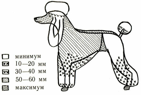 Стриженный таким образом пудель подобен овечке. Шерсть на теле и конечностях стрижется до двух с половиной сантиметров.