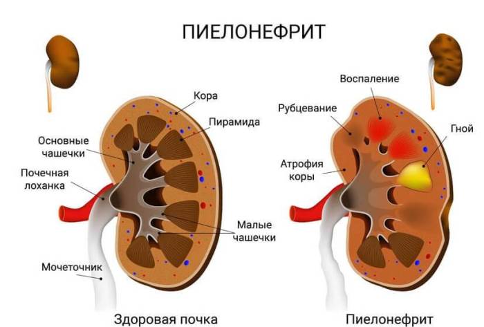 Пиелонефрит. Это инфекционное воспаление, затрагивающее паренхиму и лоханки почек.