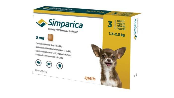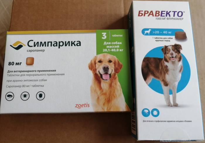 Таблетки действуют 5 недель, разрешены с 8 недель, шире диапазон по массе (Бравекто – для собак не менее 2 кг весом, Симпарика есть в дозировке на 1,3-2,5 кг).
