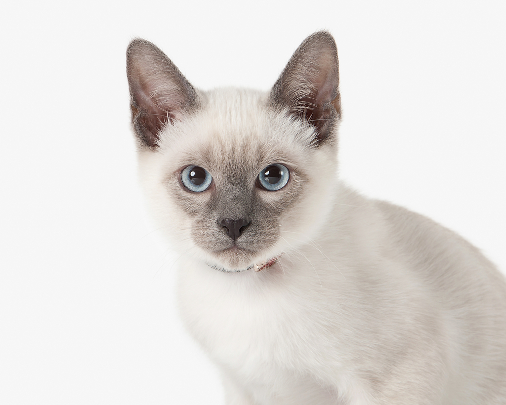 Характерная окраска – сил-пойнт: нежно-палевый фон с коричневыми пятнами на мордочке в виде маски, ушках, подушечках лап и кончике хвоста – как будто маленькая шкодница, решив полакомиться молочным шоколадом, забралась в чан с лакомством, вволю налакалась, да вот отмыться так и не смогла.