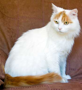- Турецкий ван – порода кошек из средней прочности телосложением и хорошо выраженной мускулатурой. Массивная грудь и шея, средней длины ноги, округлые лапы с щепотками шерсти между пальцами, средней длины хвост с пышной шерстью.