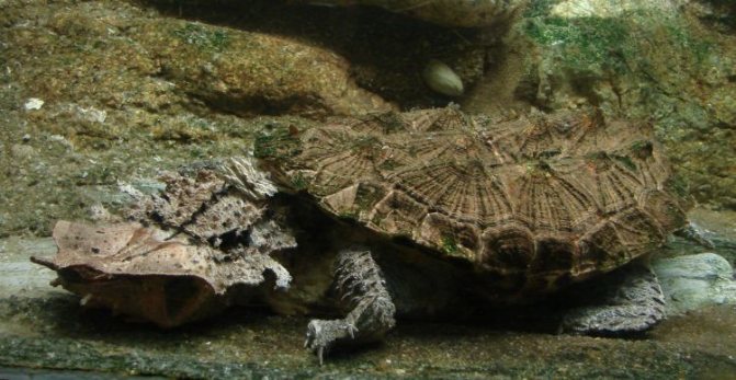 Грифовый вид черепах – из разряда крупных пресноводных обитателей черепашьего рода. Является самым опасным видом. Ее масса превышает 90 кг. Внешний вид, напоминает покров кожи динозавров. Ротовое отверстие выступает в виде крупного твердого клюва, способного с легкостью перекусывать человеческую кость