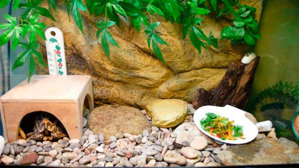 Для создания комфортных условий жизни черепахи необходимо приобрести специальные террариумы или аквариумы, которые позволят создать оптимальный микроклимат. В месте, где будет обитать пресмыкающееся, следует установить два термометра для контроля температуры. В целях безопасности рекомендуется использовать спиртовые термометры.