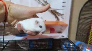 Только после первичной адаптации, можно пробовать брать хомячка на руки, осторожно подсунув руку под его животик