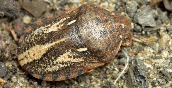 Обратите внимание: если вы заметили небольшого (до полусантиметра) жука овальной формы коричневого цвета с четким узором на жестком панцире, это сигнал тревоги. Такой “сосед” может появиться у любого — от дачника на своем участке до фермера, работающего на больших полях, и даже у крупных агрокомпаний, занимающихся выращиванием зерновых. Скорее всего, это клоп-черепашка, который провел зиму в куче опавших листьев на вашем поле и проснулся, как только температура поднялась до +14 °C. И поверьте, он очень голоден и с удовольствием полакомится вашими зерновыми. Даже если вы тщательно убирали свои поля и огороды перед зимой, это вряд ли поможет.