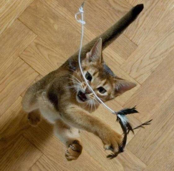 - Возможно, ваша кошка любит охотиться на зайчика, или катание игрушки на удочке-дразнилке.