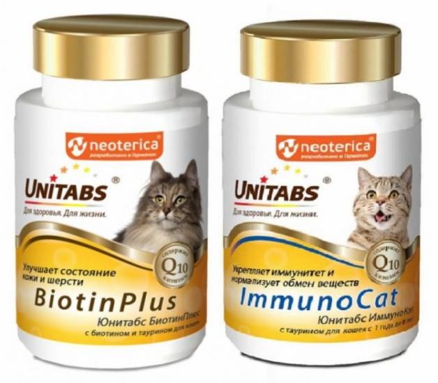 На рынке существуют витамины для кошек от выпадения шерсти, действующие на различные причины облысения. Есть таблетки от облысения широкого спектра действия, например, Katzentabs от Gimcat. Предназначены, чтобы стабилизировать эмоциональное состояние кота, а, следовательно, для предотвращения облысения на нервной почве. Есть и таблетки от облысения содержащие целые наборы витаминов и минералов, с биотином (витамин B7) во главе.