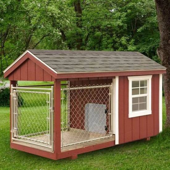- С открытой передней частью, частично утепленные (закрытый сплошными стенами с 3 сторон, имеющий крышу, дощатый настил и будку)