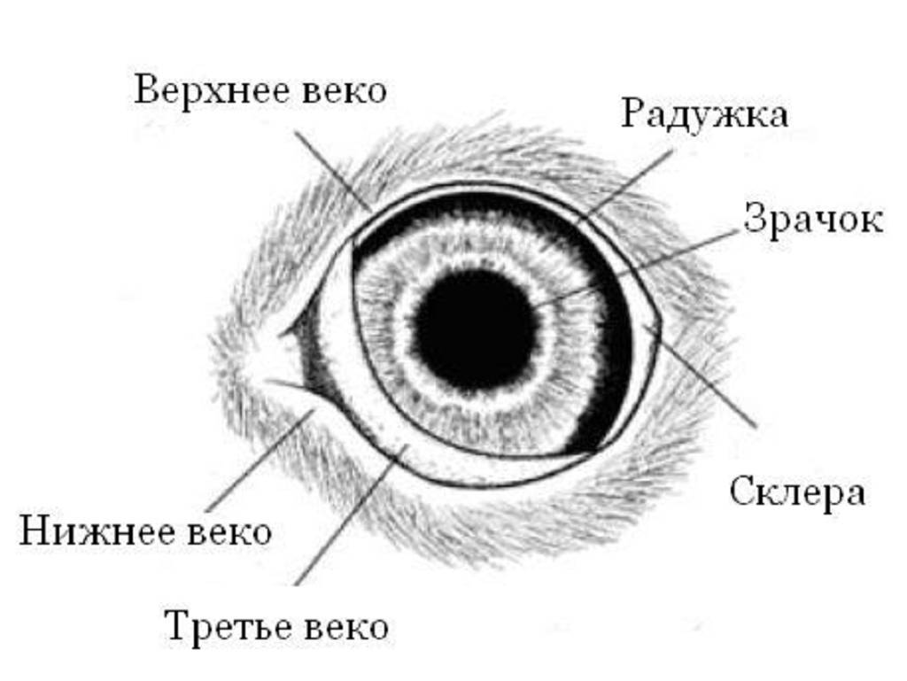 Третье веко — это полулунная кожистая складка конъюнктивы, расположенная во внутреннем углу глаза у животных. Основная функция этого элемента заключается в защите роговицы от повреждений. Это можно заметить, если слегка надавить на поверхность глаза: веко быстро закроет глаз, и зачастую это происходит даже при небольшом наклоне головы в сторону. Кроме того, в структуре третьего века находится дополнительная железа, которая производит около 30% слёз. При движении века слёзы равномерно распределяются по роговице, что способствует увлажнению глазных яблок и удалению инородных частиц и бактерий. Это, в свою очередь, улучшает общее состояние органов зрения у животных.