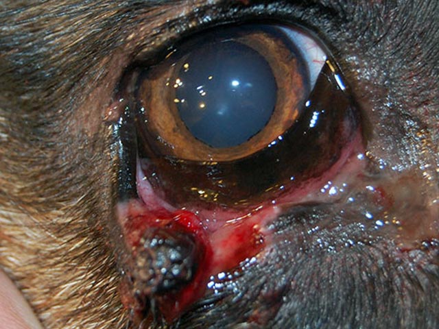Все породы собак могут столкнуться с разрывами, так как они возникают исключительно в результате механического воздействия. В зависимости от степени травмы, поврежденная область века может оставаться на своем месте или свисать из глаза.