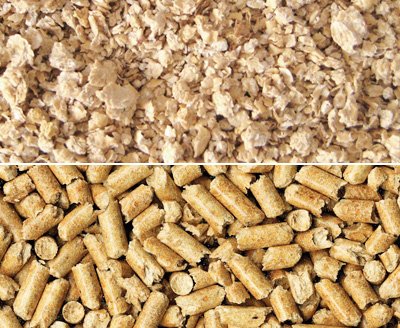 Этот наполнитель гигроскопичен и задерживает запах внутри, хотя намокшие пеллеты превращаются в труху и пыль, а в твёрдом виде травмоопасны.