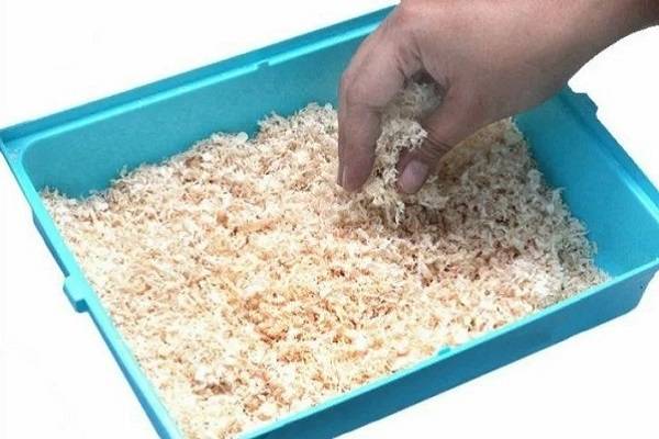 Насыпают грызунам только стружку лиственных деревьев. Чтобы не провоцировать чихание питомца, она не должна быть мелкой и пыльной.