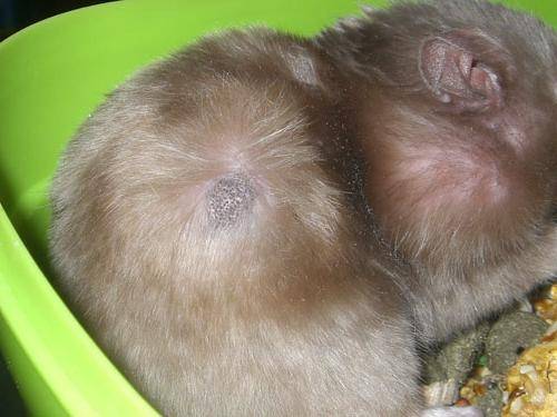 Репродуктивные функции. У самок хомяков потеря шерсти может быть связана с беременностью или кормлением потомства, что часто приводит к облысению в области живота. Опухоли яичников и воспаление матки также довольно распространены среди хомяков.