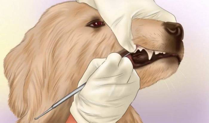 Избавиться от крупных каменных наростов можно лишь стоматологическим скалером или тупым скальпелем. Для проведения такой процедуры нужно быть полностью уверенным в своих силах и терпеливости собаки.